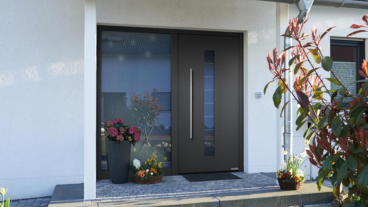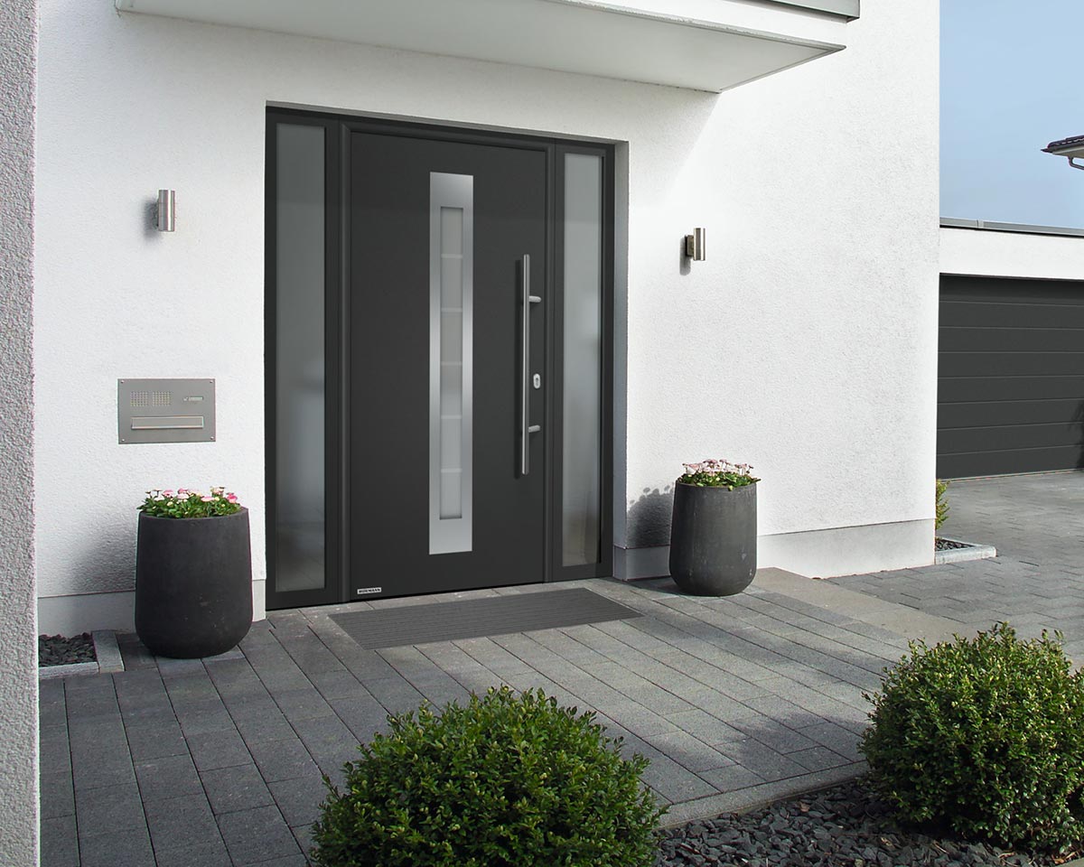 Unsere Aluminium-Haustüren ThermoSafe, ThermoSafe Hybrid, ThermoPlan Hybrid und ThermoCarbon bieten mit serienmäßiger RC 3 Sicherheitsausstattung eine hohe Einbruchhemmung. Sie überzeugen mit effizienter Wärmedämmung, sehr gutem Schallschutz und zahlreichen Gestaltungsmöglichkeiten. Zudem sind sie besonders pflegeleicht und langlebig gegenüber Witterungseinflüssen. Die Modelle ThermoSafe Hybrid und ThermoPlan Hybrid sorgen durch ihre Türblattaußenseite aus pulverbeschichtetem Edelstahl für eine besonders hohe Formstabilität auch bei großen Temperaturunterschieden. Mit Haustüren aus Aluminium setzen Sie auf Langlebigkeit, hohe Funktionalität und ein hochwertiges Design.